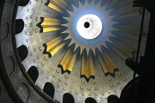 Удивительное архитектурное сооружение, доложу вам. Настоящий лабиринт в нескольких уровнях.  Ничего подобного не встречал ранее.  Ну, где еще встретишь храм, построенный в храме, как матрешка? То есть наоборот, конечно. Сначала над пещерой, где был захоронен Иисус, возвели  небольшую церковь, а затем уже над ней  - огромный храм.
