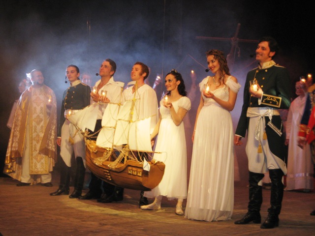 …Аллилуйя, Кончите с Резановым. Исповедуя веру живую, Мы повторим под занавес заповедь: Аллилуйя любви, аллилуйя!  Ирина Флоренская Фото автора. Крым. Евпатория. Рок-опера-балет «Юнона и Авось».