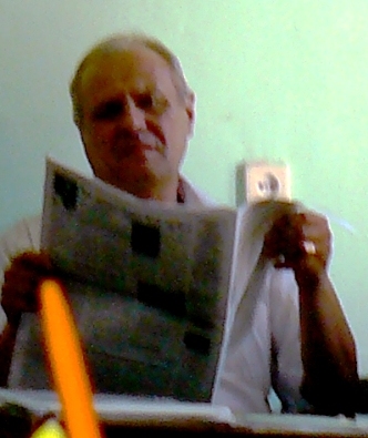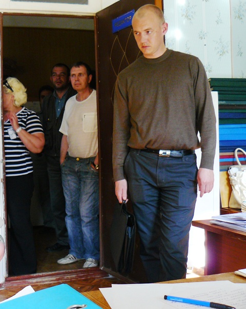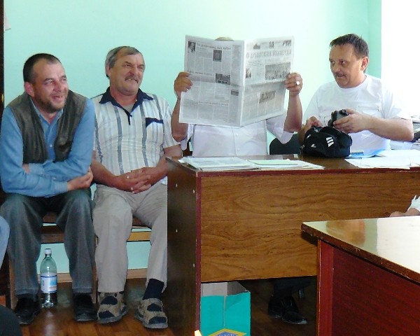 Первым, с рассказом о «текущем моменте» выступил председатель профкома Виктор Шелест, потом слово взял известный в городе юрист. На прошлых выборах юрист этот активно в президенты Украины двигал Виктора Ющенко, но тот, как вы помните, оказался на прошлых выборах там, где надо. Так вот, этот самый юрист, как увидел, направленный в его сторону объектив, стал прятаться за газетой, как шпион из детектива. Но я его все, же щелкнул, но как-то некрасиво.