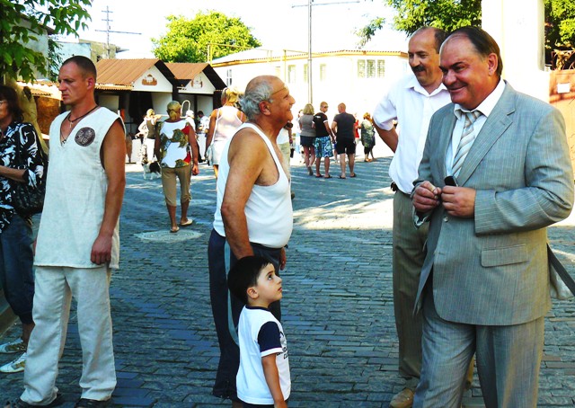 Первый из семи «Вечеров на Караимской» в Евпатории открыл городской голова Евпатории Андрей Даниленко. На этот раз традиции не ломали, короткая речь и поздравления туристам в связи с открытием «Вечеров на Караимской» от мэра, и инспекторская проверка видео ряда. Тем, кто не понял, поясняем: мэр Евпатории проверил то, что видно. На Караимской Андрей Даниленко пообщался с Алифе Ханум, кузнецом, оружейных дел мастером, подержал в руках меч и шлем, оценил работу гончаров и местных умельцев. Там же, на Караимской к мэру Евпатории пробился абориген в майке с жалобой на киоск у его окон. До этого он писал жалобы одному из депутатов горсовета. В течение минуты вопрос был решен. Андрей Даниленко дал команду перенести киоск подальше от окон и дверей. А в это время, одни пели, другие играли, поэты выражались, а фокусники обманывали. Те, кому положено, ходили на ходулях. «Живые скульптуры» радовали туристов своей неподвижностью и нарядами. Те, кто приехал, непрерывно щелкали фотоаппаратами. Наглостью и раскованностью выделялись местные фото профессионалы. Они лениво ходили по площади среди танцующих и поющих, выискивая нечто. Потом, это нечто ушло в сеть, пополнив фотоальбомы FACEBOOK. Тем, кому интересно, могут посмотреть