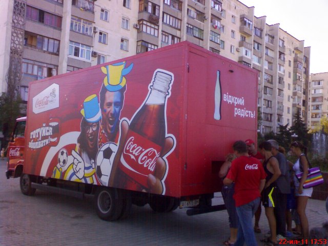 Евпатория 2011 КараимскаяНо перед тем,  как попасть на Караимскую, мы увидели, как у евпаторийского ЗАГСа раздавали всем желающим  «Кока-колу» в банках и бутылках. Кроме этого, юным евпаторийцам перепали еще  и фирменные игрушки. Неплохая рекламная акция по привлечению самых юных потребителей к главным иноземным ценностям. Да и место выбрали правильное. У фонтана евпаторийского ЗАГСА каждый вечер собираются дети вместе с родителями. Мы же, с некоторым запозданием отправились на Караимскую. У еврейской синагоги на Караимской местный караим «заводил» публику ритмичной музыкой и танцами. Тут же, в киосках, бойко шла торговля настоящими евпаторийскими сувенирами, а толпы туристов  рассекали великаны, любители экзотики фотографировались с застывшими «живыми скульптурами». А завершилась вторая из семи евпаторийских пятниц огненным шоу. Специально, для тех, кто не смог побывать на Караимской в минувшую пятницу – выкладываем фото туристов и аборигенов, сделанные в Евпатории крымским папарацци.