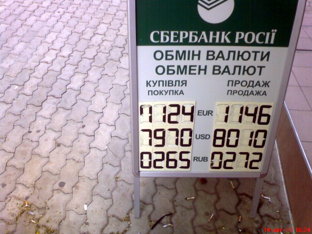 Крым. Евпатория. Курс обмена валют на 15 августа 2011 года. Сбербанк России в Евпатории.