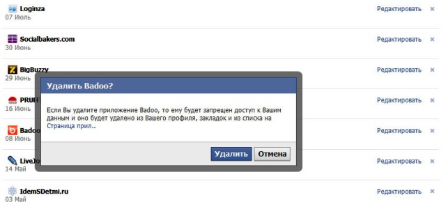 Проверьте заодно, каким приложениям вы дали доступ к своему акаунту на Facebook. Помните, сервис купонов зарегистрировал вас у себя через Facebook и другой сайт предложил авторизоваться через свой акаунт в социальной сети? Все эти «связи» зафиксированы здесь, и вы можете их удалить, тогда им будет запрещен доступ к вашим данным и они будут удалены из вашего профиля, закладок и из списка на странице.