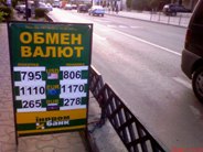На фото: курс обмена валют в Евпатории 25 августа 2011 г.