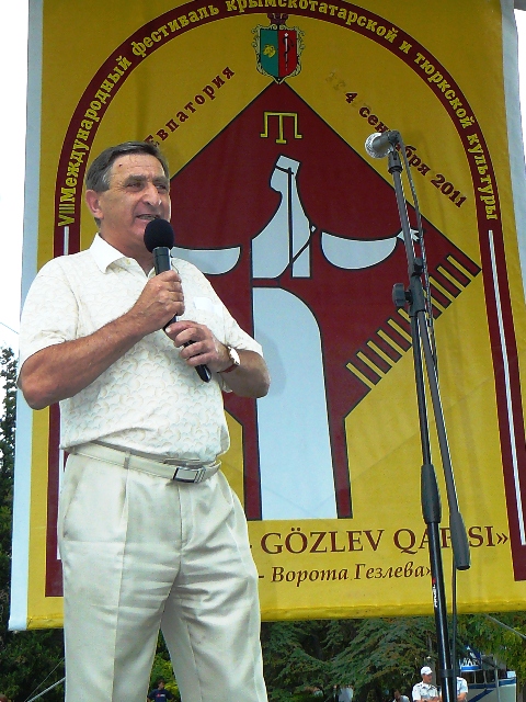 Image4 сентября 2011 года, в 10 часов  30 минут представители интеллигенции, и лидеры национальных общин Евпатории собрались в читальном зале библиотеки имени А. С. Пушкина на презентацию эскиза памятника крымскотатарскому литератору и общественному деятелю Эшрефу Шемьи-заде. Организаторы мероприятия полагали, что для презентации эскиза памятника им хватит полчаса, однако выступления представителей местной интеллигенции  затянулись настолько, что с улицы стали забегать организаторы, демонстрируя наручные часы, с намеком, что уже пора и завершить неспешный разговор. Но быстро не получилось. Лишь после того, как выступили все желающие «одобрить эскиз памятника», с чувством исполненного долга  они, наконец-то,  вышли к народу на Театральную площадь. Все это время в строю перед читальным залом стояли юные артисты в национальных костюмах. Крымский папарацци, отсняв тех, кто выступал в библиотеке, переместился поближе к тем, кто уже готов был петь и танцевать. Сделав несколько сот снимков, из которых читатели сайта «Крымский аналитик» смогут посмотреть три десятка, крымский папарацци покинул праздничное действо с первыми каплями дождя. Но настоящего ливня в Евпатории в этот день не случилось. А в программе фестиваля еще значился международный турнир по крымскотатарской борьбе «Куреш», который должен был проходить все на той же Театральной площади в 13 часов. Победитель турнира должен был получить призового барана.   Но мы так и не узнали, кому из борцов достался призовой баран и что он с ним, потом сделал. Но, это и не важно. Главное на фестивале «Гезлев къапусы» были  лица наших земляков: караимов, крымских татар, греков, русских, которых объединяет одно – наша великая Родина.