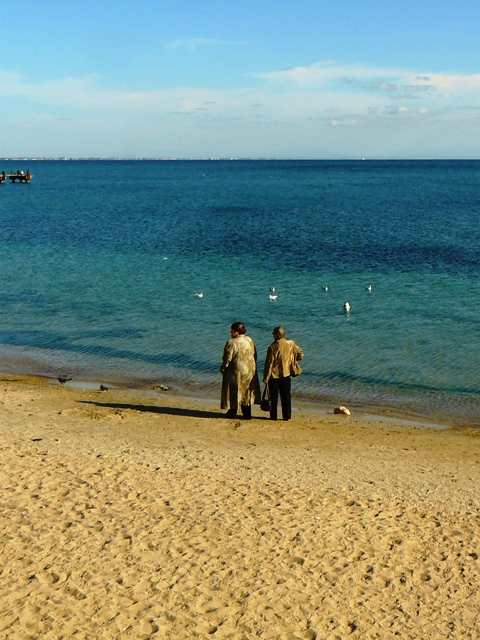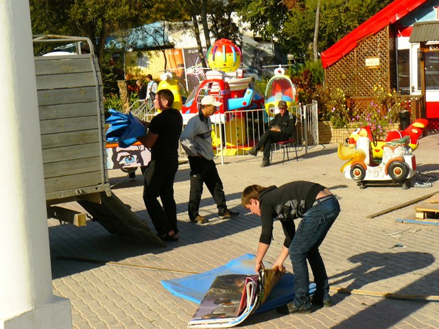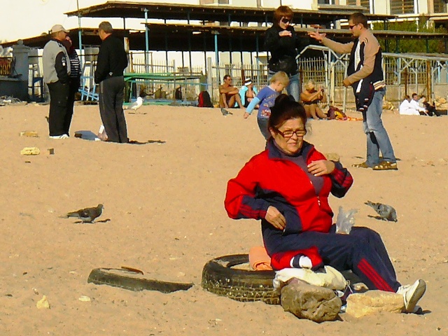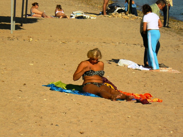 Евпатория ностальгияЗагорать и купаться туристы  идут теперь в парк имени Фрунзе. А в это время рабочие разбирают летние рестораны, кафе, магазины. Возвращаются в парк с набережной Терешковой художники. Портрет дамы на фоне «мяса в лаваше». Художника это соседство не смущает, даму тоже. Совмещаю лаваш с художником. А  на пляже тем временем  идет игра,  идет картежная игра! И уже не важно, что место для загара и игры выбрано не самое лучшее, потому что игра  на интерес. А чем еще заниматься бронзовому мужчине с дамой у мусорного бачка под холодным октябрьским солнцем. Не будет же он  уподобляться соседкам по песку. Те же, кто сезон «обнаженки» завершил в сентябре, фотографируются на память на берегу, принимая эротические позы. И только древние старухи с семечками не закрывают свой прибыльный бизнес. Почему бы не торговать, если в городе полно туристов, и все они обязательно, хоть раз, отметятся в парке у моря. Возвращаюсь домой по Некрасова. На перекрестке у горбольницы автоавария. Водитель фотографирует машины и вызывает ГАИ. ГАИ не торопится. Пострадавших нет, а страховка и ремонт проблема тех, кто не уступил и ударил. Вы хотели отдохнуть в Евпатории в октябре, но не смогли доехать до Крыма из Москвы. Тогда смотрите прямо сейчас. Евпатория со своей осенней ностальгией уже на вашем экране.