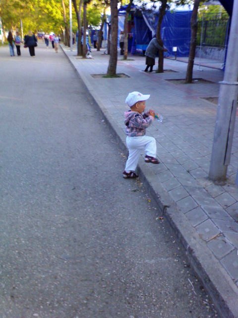 Подвергая опасности юных евпаторийцев, которые на этой пешеходной  улице делают свои первые шали   не только с родителями, но и самостоятельно