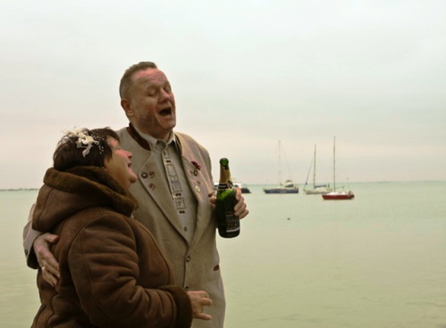 У этих новобрачных за плечами большой кусок прожитой совместно жизни. Нелегкой, прямо скажем, жизни. Больших наивных людей ободрали как липку мошенники. Настолько, что на свадебном столе яства подавали в бумажных тарелках, а наливали горькую в пластмассовые стаканчики. Но разве в посуде дело?