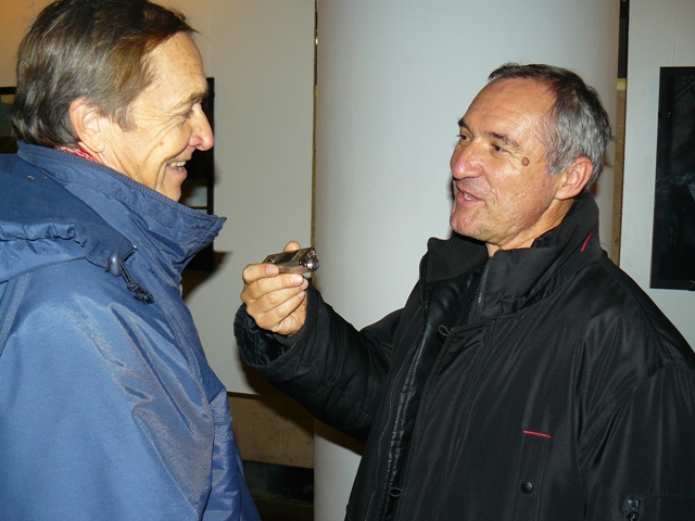 И тут же без перехода, Валентин Щербинин стал рассказывать, когда и где был снят тот или иной снимок, какими были условия съемок. Я, не прерывая рассказ, выхватываю вспышкой из полумрака самого Щербинина, депутата Евпаторийского горсовета  Андрея Пермякова, фотокорреспондента городского интернет-издания Елену Покрепу и  многочисленных коллег - фотографов. Завтра и эти фотографии станут историей Евпатории, а о самой фотовыставке говорить ничего не буду, потому, что фотографии не халва, их не кушают, и о них умные люди не говорят  - ИХ ПРОСТО СМОТРЯТ. Приходите в театр, не пожалеете!