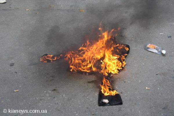 В завершение митинга активисты указанных организаций сожгли чучело, символизирующее Мустафу Джемилева.