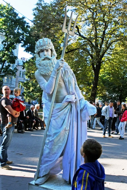 …В самом центре города, где по случаю фестиваля слонялась масса народу, никто не проходил мимо замерших, как статуи, евпаторийских артистов. Все  стремились запечатлеться с белокрылым ангелом,  римским воином, венецианской дамой, бородатым Ярославом Мудрым, Нептуном, баварским королем и т.п.