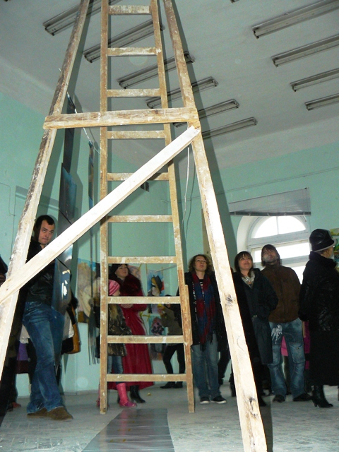 Причем, в казенном доме поставили посреди комнаты огромную лестницу, которая на что-то намекала, куда – то звала и что-то обещала, в детском театре вместо лестницы у входа стоял евпаторийский робот с бобинным магнитофоном из прошлой жизни вместо головы, а уж в музее вообще накосячили с пирамидой из картин.