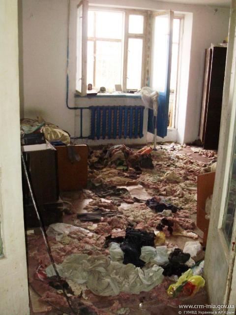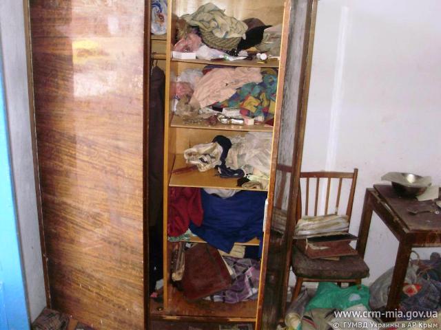 В Евпатории в многоэтажном доме на проспекте Победы обнаружили мумию умершей женщины. 60-летний душевнобольной два года провел рядом с трупом своей матери.  Страшную находку обнаружили участковые милиционеры в Евпатории, после того как в опорный пункт милиции по телефону позвонили жители одного из многоэтажных домов, расположенного на проспекте Победы. Соседям не понравились запахи, которые исходили из нехорошей квартиры. Кроме этого, бдительные граждане жаловались на то, что их сосед тащит в квартиру зловонный мусор со всего города и представляет опасность из-за того, что он ранее проходил лечение в психбольнице. В советское время за душевнобольными людьми врачи устанавливали жесткий контроль, их регулярно навещали участковые медсестры и врачи-психиатры, но в незалежной Украине, которая спит и видит себя ЕВРОПЕЙСКОЙ ДЕРЖАВОЙ, трогать душевнобольных не моги, обследовать на дому не смей, потому что у нас каждый сумасшедший имеет право творить все что ему взбредет в голову. Не реагируют, как правило, на подобные сигналы и в милиции, но на этот раз сотрудники милиции решили все-же посетить "нехорошую квартиру". Для проверки информации на место были направлены двое участковых инспекторов. Двери указанной жильцами квартиры никто не открывал, тогда правоохранители решили дождаться хозяев квартиры на лестничной площадке. Через некоторое время из злополучной квартиры вышел 60-летний мужчина. Милиционеры предложили хозяину вернуться в квартиру. Жилище душевнобольного гражданина напоминало свалку зловонного мусора, но самое страшное милиционеры увидели на кровати. Там лежала женская мумия. В ходе проверки было установлено, что обнаруженный труп принадлежит матери обитателя квартиры, 1928 года рождения. При первичном осмотре судмедэксперта видимых телесных повреждений на трупе не обнаружено. Со слов очевидцев, пожилая женщина болела онкологическим заболеванием. В последний раз ее видели живой около двух лет назад.Потом она перестала выходить из квартиры, а ее сын рассказывал соседям, что мать уехала на лечение. Побеседовав с сыном умершей женщины, милиционеры услышали от него, что мать, якобы, умерла около двадцати дней назад.