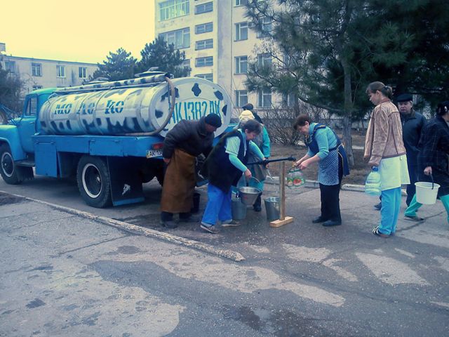 Информацию о деятельности волонтерского движения можно узнать по телефону «горячей линии» управления труда и социальной защиты: 3-64-67 Пресс-служба городского совета и исполкома. На фото: в Евпаторийскую горбольницу привезли воду. Фото Марка Агатова. Евпатория. Крым. 8:53 01.03.2012 Крым. Евпатория. Авария на водоводе. Евпатория без воды.