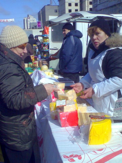 Ярмарка в ЕвпаторииВ Евпатории досрочно, за 5 дней до главного дамского праздника, провели предпраздничную ярмарку. Дамы были -  без макияжа и причесок. Традиционный фоторепортаж из Евпатории о предпраздничной ярмарке совпал с  днем «холодной воды». Пока большая часть мужского населения очищала квартиры от недельного обезвоживания, ржавчины и «просочившихся» соседей сверху, на проспекте Победы шумела ярмарка. Ранние овощи, прошлогодние фрукты, картошка, капуста, водка в стеклянной таре, бутылки с вином, рыба, мясо, короче, полное изобилие. Цены, говорят, были божеские.  Ставрида черноморская была в два раза дешевле, чем в магазине. (Кому интересны подробности в цифрах – смотрите фото). Качество товара устраивало домашних хозяек. А кое-где дамы строились в очередь, чтобы купить. Кое-кому хотелось бы и скоморох  на ярмарке, и певцов из народа, но Евпатории было не до веселья. Неделя без воды  как то не располагала к частушкам, танцам и ходулистам. А без народных артистов - ярмарка прошла как-то буднично и тихо. Остались в памяти фотоаппарата только фото продавцов и покупателей, а также моменты предпраздничной евпаторийской жизни без фотошопа и макияжа.