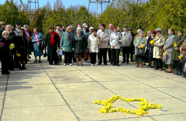 Евпатория холокост19 апреля 2012 года  у противотанкового рва, где во время Великой Отечественной войны были расстреляны тысячи евпаторийцев, зажгли поминальные свечи и возложили цветы к памятнику жертвам фашистов. Желтые цветы в руках пожилых людей у памятника жертвам фашизма. Слово о холокосте  и погибших от рук нацистов 6 миллионов евреев. У этого противотанкового рва были расстреляны вместе с евреями все оставшиеся в городе крымчаки. В живых остались только те из крымчаков, кто с оружием в руках защищал свою Родину СССР. О том, что творили фашисты и изменники Родины в Крыму,  рассказали выжившие в этом аду люди. Они вспоминали своих родных, убитых извергами грудных детей и призывали жителей нашей страны остановить возрождающийся на Украине фашизм. Об этом говорили заместитель городского головы Евпатории Эдуард Кугель и  депутат Евпаторийского горсовета, заместитель председателя крымской республиканской организации крымчаков «Кърымчахлар» Марк Пурим.  Траурная музыка, стихи, посвященные  погибшим в годы войны людям, напомнили собравшимся о том, в каком мы мире живем. На Украине вновь поднимают головы недобитые фашистские холуи, изменники Родины и предатели всех мастей.  На Западной Украине их чествуют, как героев, а на памятниках погибшим воинам то и дело появляются  нарисованные неофашистами свастика и призывы к расправе с теми, кто пытается остановить фашистскую чуму на Украине.  Идеологию неофашизма в стране победившей фашизм, примерили на себя  некоторые украинские партии. А власть, вместо того, чтобы пресечь на корню возрождения фашизма в стране, играет в демократию, забывая о том, чем кончается для людей подобная «демократия».