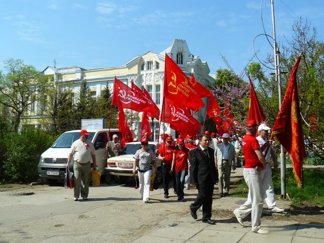 PS. Вечером 1 мая мы решили посмотреть, чем же потчует расположенная в пяти метрах от детской площадки торговая точка. Оказалось - пивом на розлив. Так, что всему виной ПИВО, которое перекрыло со стороны Театральной площади Евпатории коммунистам дорогу к Ленину.