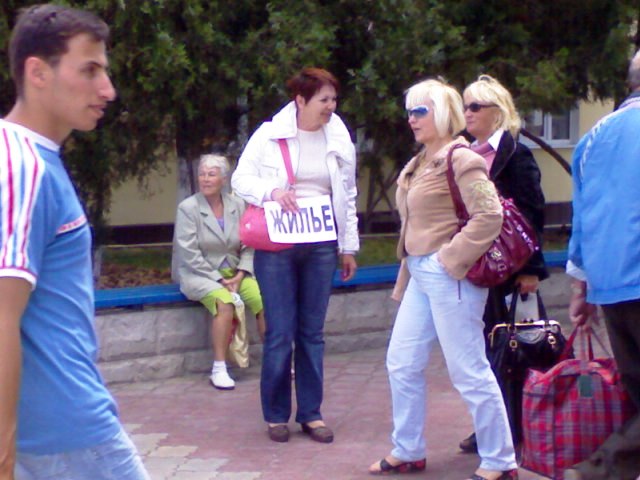 А вот маклеров и таксистов, окучивающих туристов, явно прибавилось. В руках они держали таблички с надписью «Жилье» и каждому ступившему на крымскую землю обещали золотые горы. Вот, только уверенности в том, что маклеры, прикинувшиеся «золотой рыбкой», исполнят три заветных желания, лично у меня не было никакой. Как правило, у «частнопрактикующегося индивидуума», занимающегося этим бизнесом в обход закона на свой страх и риск, база квартир, где можно поселить курортника, невелика. Да и никаких гарантий туристу в том, что того не вышвырнут ближе к ночи из снятой квартиры пьяные хозяева, он дать не может.
