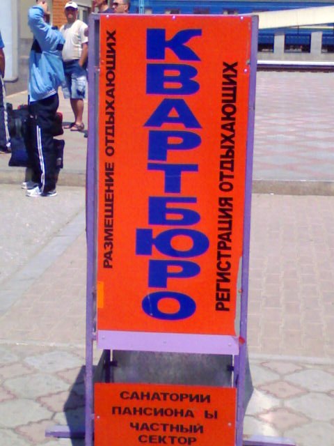 Крымский папарацци без особого труда тут же на вокзале, отыскал специальный указатель, оповещающий гостей курорта о том, что прямо здесь на вокзале вам предложат любое жилье по сносным ценам и в любом районе.