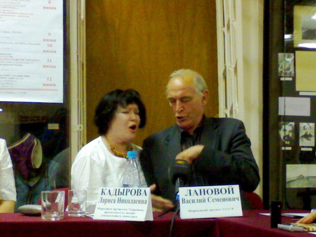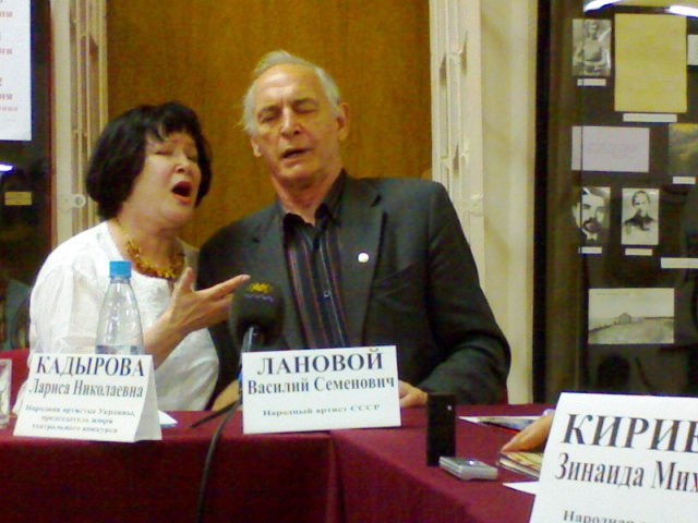 Василий ЛановойЭти фотографии Василия Ланового крымский папарацци сделал в Евпатории 8 июня 2008 г. Таким великого артиста вы еще не видели. Это реальное фото без ретуши и спецэффектов. В Евпаторию Василий Лановой, народный артист СССР, лауреат Ленинской премии, профессор, заведующий кафедрой художественного слова Театрального училища им. Б. В. Щукина, приехал в качестве члена жюри Х Международного фестиваля античного искусства "Боспорские агоны". Впервые в истории евпаторийского краеведческого музея, в зале, где размещены уникальные экспонаты, посвященные "древнегреческой истории Крыма", величайший российский артист Василий Лановой не только говорил об искусстве, "Боспорских агонах" и некоторых крымских руководителях, но и пел дуэтом с Ларисой Кадыровой. «Такое впечатление, что ему удавалось все, за что бы он ни брался: герои положительные и отрицательные, персонажи смешные и героические. Сначала современные руководители, идеологи перемен, «образованные, чуждые анархии и зазнайства» (Шахматов в спектакле «Равняется четырем Франциям», Уваров в фильме «Картина», Сагадеев в «Тринадцатом председателе», потом те, кем стали партийные ретрограды в перестройку («Крестоносец-2», сериал «Мелочи жизни»). У всех общим было одно — ярко выраженный темперамент и характер, которого хватило бы на двоих» - Н. Казьмина.