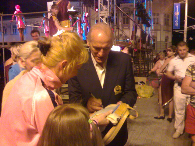 В Евпатории Василию Лановому буквально не давали проходу, он вынужден был оставлять автографы и фотографироваться со своими почитателями в самых неожиданных местах города курорта.