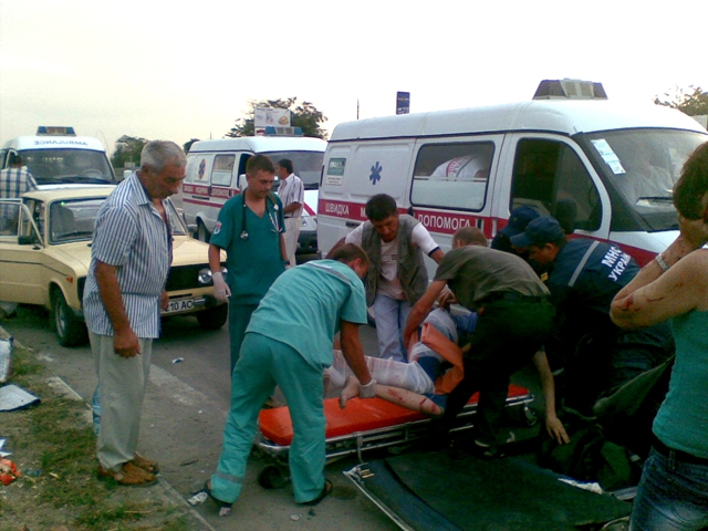 ДТП  В КрымуПо данным пресс-службы ГАИ,  в результате ДТП пострадало 16 человек, которые получили травмы различной степени тяжести. Уголовное дело возбуждено по ч.1 ст.286 Уголовного кодекса Украины – нарушение правил безопасности дорожного движения, в результате которого потерпевшему причинены телесные повреждения средней степени тяжести. В настоящее время назначен ряд экспертиз, ведется следствие. Микроавтобус не принадлежит автотранспортным предприятиям, занимающимся перевозками людей в Крым. Жители Кременчуга наняли его у частника. 17 человек были доставлены в медицинские учреждения г.  Симферополя в результате серьезного ДТП с участием микроавтобуса «Мерседес-Спринтер» и бортового автомобиля «Газель». Сообщение о дорожно-транспортное происшествие на въезде в г. Симферополь (11-й км трассы «Киев-Харьков») поступило в службу спасения в 05-08 9 августа. К месту аварии немедленно был направлен оперативно-спасательный автомобиль, бригада скорой медицинской помощи и сотрудники ГАИ.   По прибытию к месту ЧП спасатели с помощью гидравлического инструмента срезали двери в салон микроавтобуса, так как она была сильно деформирована и не позволяла выбраться пострадавшим пассажирам, после чего стали оказывать им первую помощь и доставили в машины скорой помощи. Всего на месте ДТП работало 6 машин скорой медицинской помощи Службы медицины катастроф, 13 человек были доставлены в 6-ю городскую больницу г.  Симферополя, 2 человека в ЦРКЛ Симферопольского района и 2 ребенка в республиканскую детскую клиническую больницу.