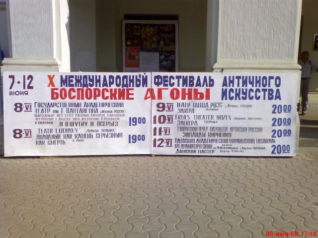 Василий ЛановойВ Евпатории с большой помпой в присутствии десятка -теле и фото камер открыли Х Международный фестиваль античного искусства «Боспорские агоны». Сменить площадку для проведения фестиваля его организаторам пришлось из-за того, что керченский градоначальник закрыл на ремонт местный театр, а специалисты по ремонтным работам тут же открутили все кресла в зрительном зале, чтобы у артистов не оставалось иллюзий. В отличие от керченского, евпаторийский городской голова Андрей Даниленко идею проведения международного фестиваля античного искусства "Боспорские агоны" в Евпатории поддержал и лично принял участие в его открытии. Крымский папарацци вместе со всеми поприсутствовал на этом событии, но снял и то, что скрыто. Сегодня впервые в истории «Боспорских агонов», самый подробный фоторепортаж из закулисья международного античного фестиваля без ретуши и фотошопа. Если вы хотите увидеть артистов без грима и посмотреть на работу режиссеров во время генеральной репитиции, если вас интересуют тайны создания всенародных праздников, тогда следуйте за мной. Только на сайте «Крымский аналитик» голая правда о международном фестивале античного искусства «Боспорские агоны» и никакой рекламы! Никаких комментариев! Только фотографии! Спешите видеть любимых актеров - Василия Ланового, Зинаиду Кириенко, Алексея Кузнецова. На сайте «Крымский аналитик» больше 60 фотографий, которые расскажут лучше любого журналиста о том, как проходило открытие Х Международного фестиваля античного искусства «Боспорские агоны» в Евпатории и что режиссеры и организаторы фестиваля скрыли от зрителей.