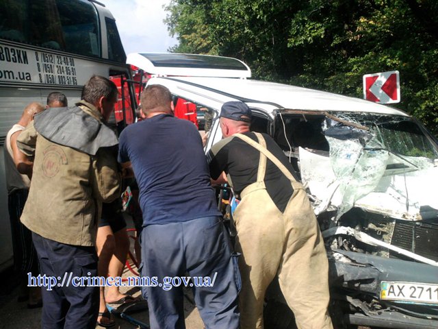 В воскресенье, сотрудники МЧС Крыма трижды выезжали для оказания помощи людям, пострадавшим в результате дорожно-транспортных происшествий. В результате, которых погибла 22 летняя девушка, пострадало 10 человек, из них 2 детей.  12 августа в 14-10 поступило сообщение о ДТП на трассе «Симферополь-Херсон». В результате дорожно-транспортного происшествия пострадало 3 человека. Как выяснили сотрудники ГАИ, водитель автомобиля «Субару» не справился с управлением автомобиля и совершил столкновение с деревом. В результате пострадал водитель автомобиля и двое пассажиров, все граждане Республики Беларусь. 34-летнего водителя, с закрытой черепно-мозговой травмой и незначительными повреждениями мягких тканей тела был доставлен и госпитализирован в Симферопольскую 6-ую городскую больницу, а двое пассажиров, 10 - летнего мальчика и 13-летнюю девочку доставили в детскую республиканскую клиническую больницу им. Титова. Состояние пострадавших стабильное. Буквально через полчаса на юго-востоке Крыма произошло еще одно ДТП на трассе «Судак - Грушевка» с участием микроавтобуса «Мерседес Вито» и автобуса «Меоплан». По данным МЧС, 66-летний водитель микроавтобуса «Мерседес Вито», житель Харьковской области, который направлялся в Судак, не справился с управлением, выехал на встречную полосу и совершил лобовое столкновение с рейсовым автобусом «Меоплан», в салоне которого находилось 45 человек. В результате столкновения погибла 22 летняя девушка, пассажирка автомобиля «Мерседес Вито», жительница Харьковской области, пгт. Пруденко, и еще двое пассажиров пострадали: 45-летняя жительница АР Крым, с. Насыпное, и 25-летний парень, житель Луганской области, г. Стаханов.