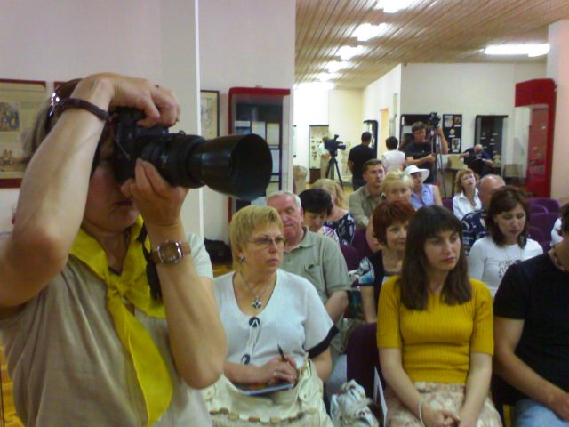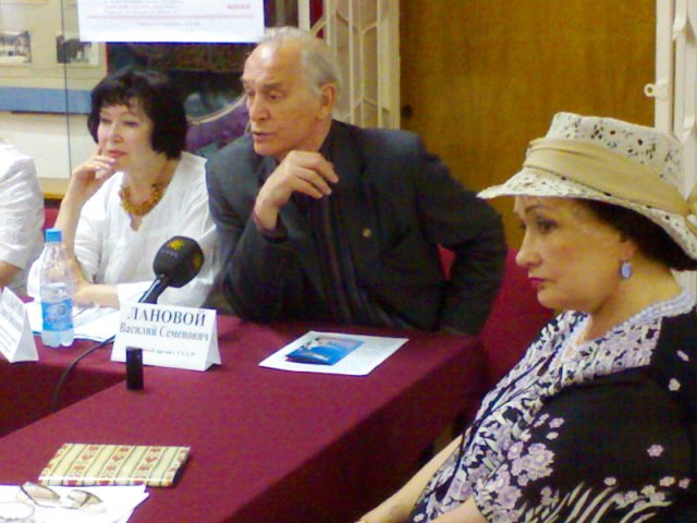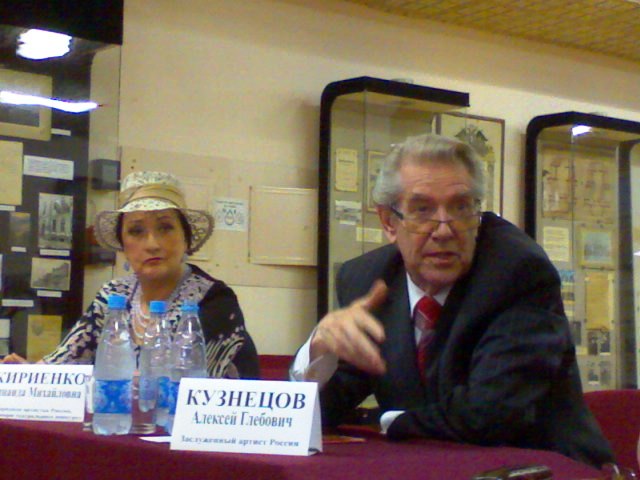А вот о праздниках Керкинитиды история умалчивает, археологи утверждают, что основатели Евпатории принесли сюда традиции своей культуры: культ Зевса, Афины, Апполона, Артемиды, Диониса, Деметры, Гермеса, героя Геракла. Особенно почитался в Керкинитиде и ее округе герой Геракл, изображения которого здесь были широко представлены на известковых рельефах. Подобных рельефов с изображением Геракла в Северо-Западном Крыму найдено всего восемь, четыре из них можно было не только увидеть в экспозиции, но и пощупать своими руками.  Однако евпаторийско-керкинитидский Геракл интересовал в основном -теле и фото журналистов. Все остальные говорили на пресс-конференции о Х Международном фестивале античного искусства «Боспорские агоны», о неожиданно случившемся ремонте керченского театра, где должны были проводить фестиваль, о спектаклях, артистах, культуре и о городском голове города Керчи, который чего–то недопонимает в великом предназначении античного искусства. Потом на вопросы журналистов ответили любимые и поистине народные артисты Василий Лановой, Зинаида Кириенко и Алексей Кузнецов. Крымский папарацци решил не умничать и глупых вопросов не задавал. А чего спрашивать, когда и так все ясно: древние греки - это хорошо, а городской голова Керчи - не очень. Поэтому крымский папарацци безостановочно щелкал своим фотоаппаратом, чтобы показать истинным любителям и почитателям, как все это было.  Алексей Кузнецов Марк Агатов 9 июня 2008 г.