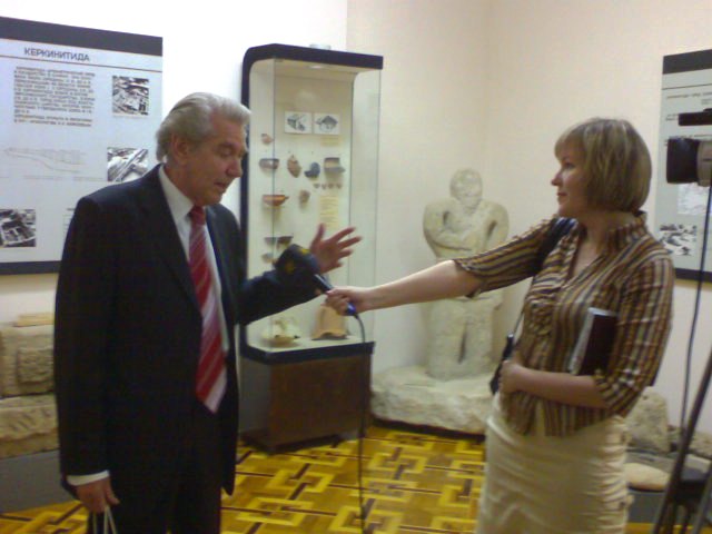 Наконец-то они собрались вместе: Василий Лановой, Алексей Кузнецов, Зинаида Кириенко , древние и современные греки, музейные экспонаты, чиновники и журналисты, чтобы поговорить в стенах евпаторийского краеведческого музея о «Боспорских агонах». А заодно и посмотреть выставку «Агоны в античной Керкинитиде». Пресс-релиз, который получили в музее журналисты, сообщал о том, что на выставке представлены находки из раскопок античных Керкинитиды и городищ Северо-Западного Крыма последних двух веков. Из собрания музея на этой выставке были терракотовые, мраморные статуэтки Артемиды, Афродиты, Деметры, Диониса, Кибелы, известняковые рельефы Геракла, граффити на керамике в честь богов и монеты Керкинитиды с изображением божеств. А для того, чтобы пишущая публика все поняла правильно, сотрудники музея перевели на русский язык древнегреческое слово «агоны» как «честные соревнования» и пояснили, что они возникли в глубине веков и устраивались везде, где только существовали греческие полисы, в том числе и в Северном Причерноморье. Игры, которые проводились во время Агонов, являлись культовыми празднествами и сопровождались процессиями в честь божества, почитаемого в городе, спортивными и музыкальными состязаниями, сценическими представлениями.