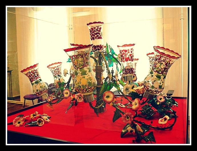 Крымский папарацци хотел заснять древние украшения, но ему настоятельно посоветовали этого не делать, мол, на такие сокровища народ должен смотреть лично. И это, наверное, правильно. Хотите увидеть что-то новенькое из старого и древнего – идите в музей. Единственное, что позволили запечатлеть на века крымскому папарацци - люстру. Она занимает Центральную часть экспозиции выставки. Люстра не простая - из венецианского стекла XVIII века, изготовленная в мастерских о.Мурано.