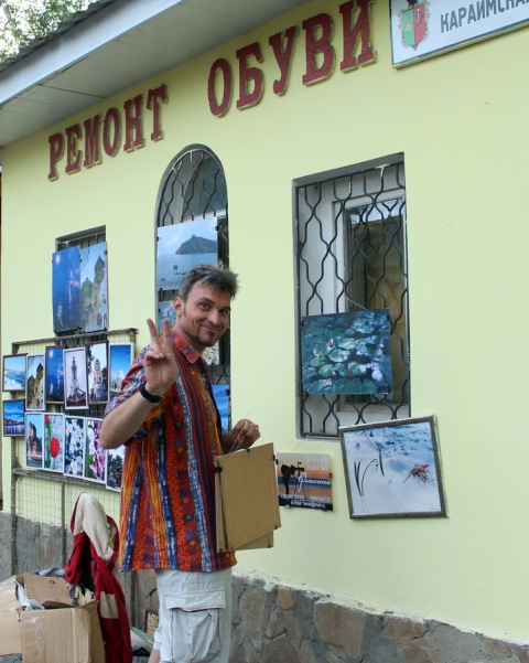 Юрий Теслев. Иерусалимский балаган, надо увидеть собственными глазами, и … не умереть.  Приятно, что евпаторийский проект «Новый Иерусалим», оказался таким живучим. Хотя многим, поначалу казалось, что из этой затеи ничего не выйдет. Куда, мол, тягаться Евпатории с самим Иерусалимом! Ан, нет. Скрытое очарование средневековых улочек, не имеющих аналогов на Украине, влечет сюда паломников со всех республик бывшего СССР. Отдыхающие находят здесь не только неповторимый лабиринт улиц. Руководство города сумело наполнить уникальную застройку новым содержанием. По пятницам, когда проходят так называемые «Вечера на Караимской» гости находят здесь предложения практически на любой вкус. Их столько, что глаза разбегаются и текут слюнки от невозможности испробовать все соблазны. Тут вам и знаменитые евпаторийские ходулисты, и живые статуи, которые, кстати, действительно ожили в последнее время. Скульптуры перестали стоять истуканами, дивя ротозеев своим видом. Они стали просто участниками праздника, с которыми хочется и можно сфоткаться на память. А еще по пятницам вы увидите массу танцевальных ансамблей, клоунов, фокусников, вернисажи художников, услышать поэтов и певцов, встретиться с живыми писателями, сможете лично слепить глиняную кружку и написать на ней , например, «на память дедушке», можете выбрать раритетную пластинку из удивительной коллекции, которую привез из Кельна какой-то меломан. Можете стать на время кузнецом и поплясать молотом по раскаленной заготовке.