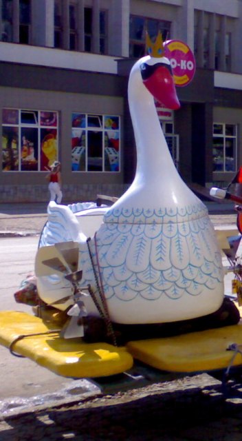 - Хотя можно посчитать и в лебедях, - подмигнул мне фотограф, указывая на проплывающего по проспекту Победы белого лебедя.