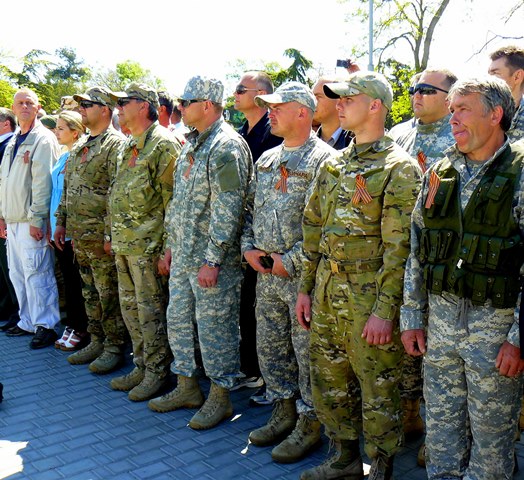 Мы вами гордимся! Сегодня в Евпатории на Театральной площади состоялось награждение сводной Евпаторийской роты Народного ополчения 1 Крымского полка. Этот день, который планировался как праздничный, был омрачен трагической вестью о погибших в Одессе и других городах Юго-Востока Украины. Перед началом церемонии прошел молебен, который провел настоятель храма Святого Пророка Иоанна Крестителя (с.Уютное) архимандрит Каллинник. Затем все присутствующие почтили память всех погибших на Юго-Востоке минутой молчания. Командир сводной Евпаторийской роты Народного ополчения Крыма Олег Саннэ дает команду отряду. Звучат гимны Российской Федерации и Республики Крым. Далее перед собравшимися выступил заместитель командира 1 полка Народного ополчения Республики Крым Сергей Куликов: «Мы стали свидетелями события планетарного масштаба. Впервые республика мирно на основании референдума вошла в состав Российской федерации, и ее граждане теперь имеют все конституционные гарантии, права и свободы граждан России. Я хочу от имени Совета министров, от имени Государственного Совета Республики Крым, от имени командования сводного полка Народного ополчения вручить 144 награды ополченцам - бойцам Евпаторийской роты за мужество, за самоотверженность, за патриотизм, за стойкость и понимание момента, что позволило осуществить этот переход мирно и спокойно. Он также поблагодарил стоящих в строю представителей крымскотатарской, армянской и еврейской общин, которые вместе со всеми встали в строй, обеспечивали стабильность и порядок. Со словами благодарности обратился к землякам капитан 1 ранга запаса Сергей Нестеров: «Земляки! Россияне! Мы выражаем вам признательность за то, что в суровые судьбоносные дни вы, проявив высокое гражданское мужество и сознательность, встали на защиту своего народа. Вы выполняли свой долг мужественно, честно и спокойно, несмотря на угрозы и провокации правящей Киевской хунты, правого сектора. Я уверен, что пройдет время, события будут переосмыслены, будет написан и издан альманах славных времен защиты Крыма и присоединения его к России! Слава России!». Заместитель городского головы Эдуард Кугель - полковник запаса, служивший на Российском Черноморском флоте, напомнил, что ровно полтора месяца назад на этой площади ополченцы принимали присягу на верность народу Крыма. «Мы провели референдум, и сейчас в городе, и в Крыму - спокойно. Во многом благодаря вам, которые, не щадя своего здоровья и жизни, встали на защиту Республики Крым. Благодаря вам, и всем, кто принимал участие в организации референдума, кто защищал покой нашего города, - у нас все хорошо. Но бдительность терять нельзя. Вы видите, что сегодня происходит за границами Крыма, на Юго-Востоке». «Вы приняли от нас, ветеранов Великой Отечественной, эстафету по защите Родины», - так начал свое выступление участник боевых действий ветеран Владимир Михайлович Ерошенко. «Благодаря вам мы сумели мирно проголосовать и реализовать нашу давнюю мечту - жить в России», - отметил он. Медали «За защиту Крыма», грамоты и благодарности за личное мужество и активное участие в проведении Общекрымского референдума получили 144 ополченца. Поздравить награжденных пришли самые юные евпаторийцы - воспитанники детского сада санатория имени Шевченко. От имени всех жителей по-детски тр