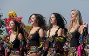 Но картинку все-таки дам. Кроме ходулистов, с нами приехал евпаторийский театр живых скульптур. Лабинчане с удовольствием фотографировались со статуями, в особенности с факиром, непостижимым образом, висящим в воздухе.