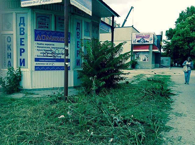 В то же время, злые языки почему-то говорят, что это не Филонов, а лично министр крымского правительства дал команду очистить территорию возле вечно закрытого строения у перекрестка на проспекте Победы и улицы Интернациональной. Почему министр? Потому что этот домик, якобы, принадлежит не Филонову, а самому министру. А вот, фамилию этого министра мы называть не будем, потому что территория вокруг этого строения была оперативно очищена от сорняков. И за это этим очистителям наше отдельное спасибо. Вот, так надо реагировать на фото Марка Агатова из «Фотоальбома для мэра. Евпатория 2015 ».  А теперь, хороший пример из жизни Евпатории. Недалеко от вышеуказанного перекрестка, на улице Интернациональной у стен группы магазинов растут розы. Территория поддерживается в чистоте, и там всегда собираются дети. И что интересно, эти магазины, не имеют никакого отношения ни к Филонову, ни к тому крымскому министру, имя которого мы решили не разглашать.  Фото Марка Агатова Крым. Евпатория. Андрей Филонов. Евпатория не готова к курортному сезону 2015. В городе транспортный коллапс Фотоальбом для мэра. Евпатория 2015