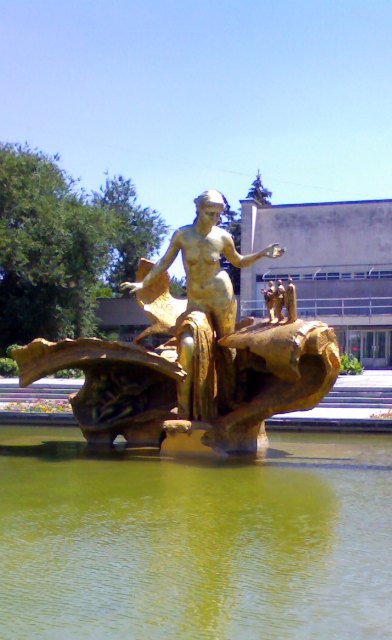Раньше здесь  круглый год поправляли свое здоровья труженики атомной промышленности, которое в то время именовалось – средним машиностроением. Санаторий «Таврия» был лучшим в Евпатории. Сейчас на Украине ни атомщиков, ни машиностроения, да и  с круглогодичными  здравницами все в порядке. Сохранилось несколько детских санаториев, а все остальные, как и «Таврия», в основном работают только во время курортного сезона. Представляете, как грустно стоять в этом пруду одинокой обнаженной женщине долгими зимними ночами