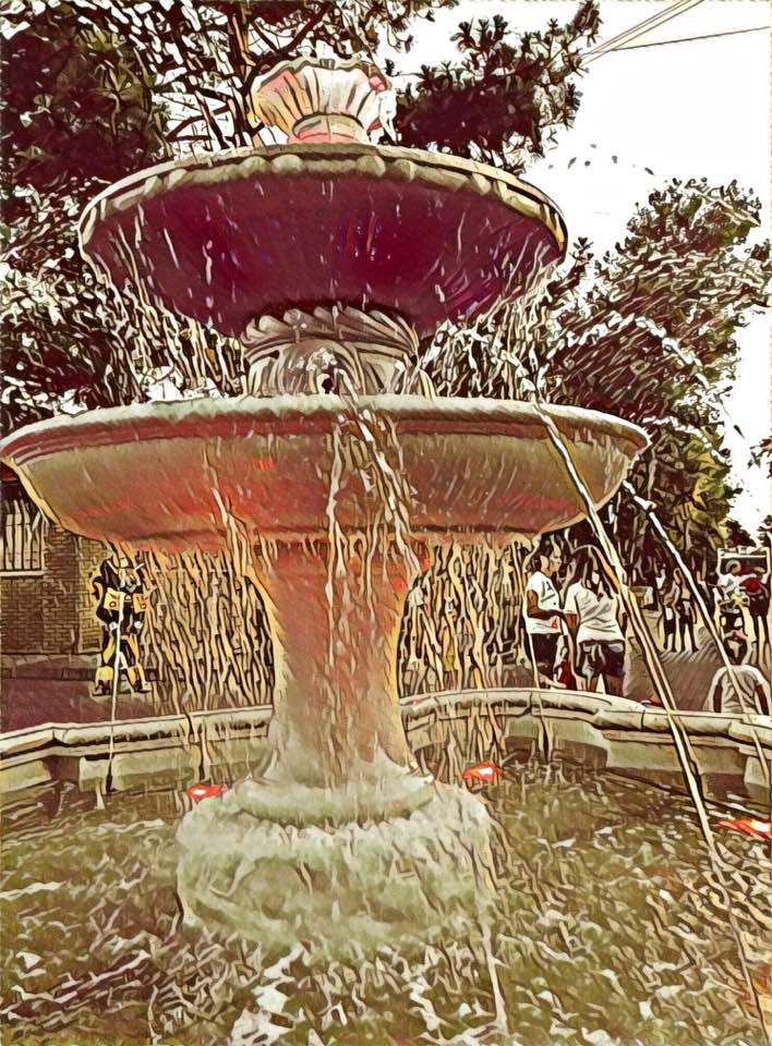 В парке имени Фрунзе я не увидел таблички о том, что этот фонтан построен по приказу бывшего мэра Андрея Даниленко. Но на удивление, он работал и в день главного праздника России. Я только взял и чуть-чуть подкрасил, исказил и улучшил.