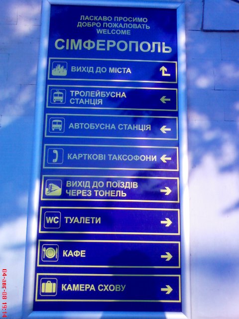 Потом, груженные чемоданами граждане стали искать камеру хранения, но ее нигде не было. Оказалось, что вместо камеры хранения в Симферополе есть  «Камера схову». И если в Симферополе еще можно найти перевод «камеры схову» на русский, то в Евпатории есть только одна «камера схову» на госмове и без помощи местных жителей отыскать российскому туристу там «камеру хранения» просто не под силу.