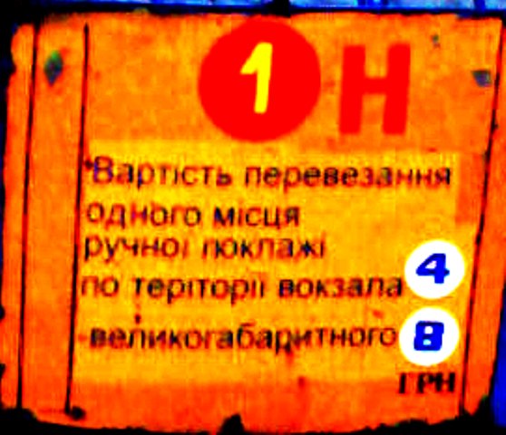А вот изрядно помятая  табличка-ценник, была исполнена на ГОСУДАРСТВЕННОЙ МОВЕ
