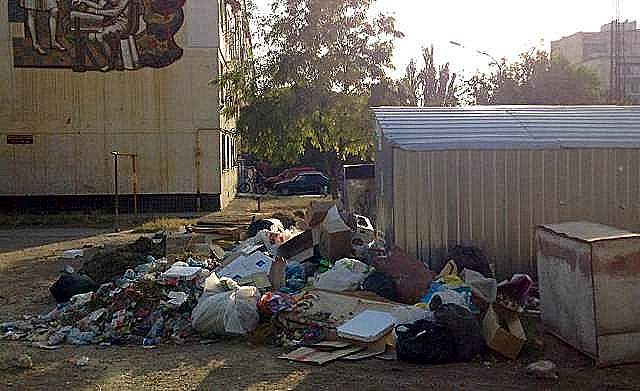 А это фото сделано 14 августа 2017. Почему бы господину Филонову не побывать в первом микрорайоне и не объяснить своим подчиненым, как надо вывозить мусор?