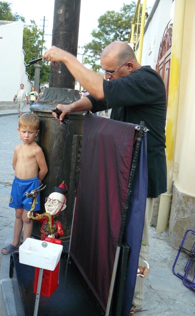 Городские власти Евпатории продолжают раскручивать средневековое шоу «Вечера на Караимской». В минувшую пятницу старинную средневековую улицу отдали народным умельцам, превратив ее в «город мастеров». Продемонстрировать свои вышивки и сувениры приехали не только крымчане, но и жители Украины. Особый интерес на Караимской у туристов вызывали работы евпаторийского фотохудожника Юрия Теслева. Раздолье в этот вечер было и для юных туристов. Одни фотографировались с живыми скульптурами, других - заинтересовал передвижной кукольный театр и великаны на ходулях. А с наступлением темноты евпаторийские артисты продемонстрировали гостям Евпатории - огненное шоу.