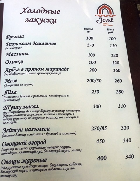 Вся правда о Крыме. Цены в крымскотатарском ресторане. Евпатория. Июль 2018 Печать E-mail