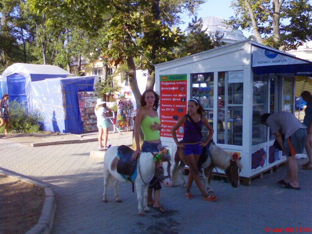 Когда надоедает лежать на пляже, самое время поискать развлечений. Чего только не предлагают евпаторийские бизнесмены.  Можно сфотографироваться  верхом на ослике