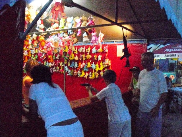 или пострелять в тире. 15 выстрелов из пистолета стоит здесь  всего 20 гривен.  Меткий стрелок может "выбить" себе на память детскую игрушку