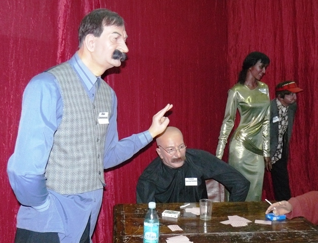 Узнав о том, что приключилось с Юрием Стояновым и Ильей Олейниковым, питерские скульптуры изваяли известных актеров в воске и усадили за карточный столик в евпаторийском краеведческом музее вместе с одним известным депутатом Государственной Думы России. Теперь эта троица за картами проводит там не только ночи, но и все свое рабочее время без еды и кетчупа в весьма живописной компании.