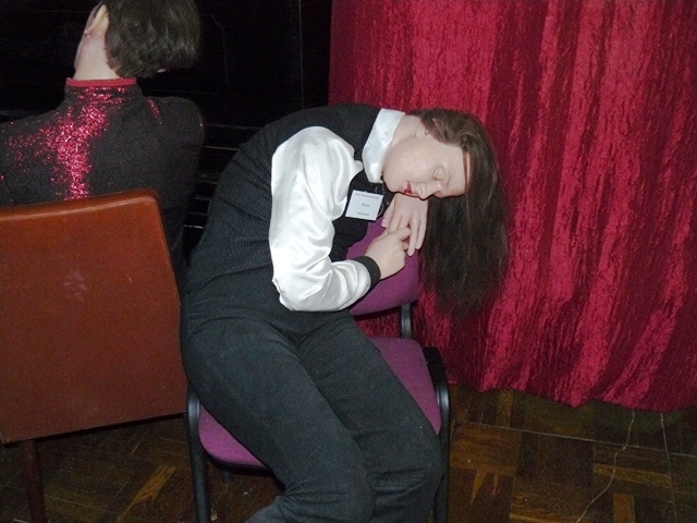 Услышав страшный рев привидений, со всего города к дверям музея сбежались черные коты и стали подвывать гостям из прошлого. Но это не смутило российских актеров, хлебнув для храбрости кетчупа, Илья Олейников и Юрий Стоянов продолжили картежную игру, делая вид, что не замечают ожившей в музее нечисти. Так они и проиграли в карты до самого утра.