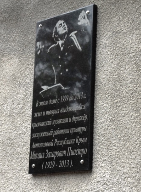 Евпатория славится своими людьми: талантливыми, скромными, умными, трудолюбивыми. Они создают историю города и живут так, что уходя, оставляют о себе долгую и благодарную память. В Евпатории открыли мемориальную доску Михаилу Захаровичу Пиастро – общественному деятелю, известному музыканту, дирижеру, руководителю ансамбля крымчакской песни «Кърымчахлар» и духового оркестра «Маяк», Заслуженному работнику культуры Автономной Республики Крым. Доска установлена на здании дома №31 по ул.Революции по инициативе ОО «Крымское общество крымчаков «Кърымчахлар», коллег-музыкантов, родственников М.Пиастро.