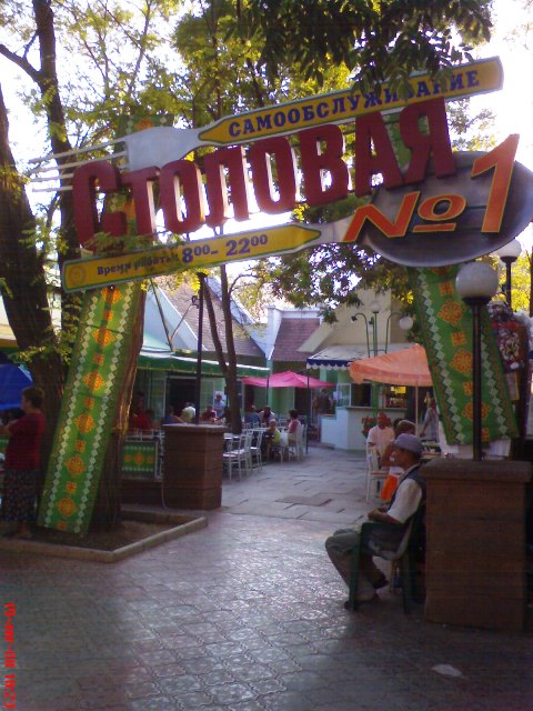 А это значит, что вас не будут доставать своим навязчивым сервисом евпаторийские школьники-официанты. Клиент, который «всегда прав», возьмет в руки поднос, загрузит его имеющимся в продаже ассортиментом, и съест все это, сэкономив на обслуживании. Признаюсь сразу, я ни разу не обедал в столовой №1 и не могу оценить качество блюд, но то, что «совковая реклама» хорошо воспринимается «малобюджетными туристами» из Украины подтверждаю.