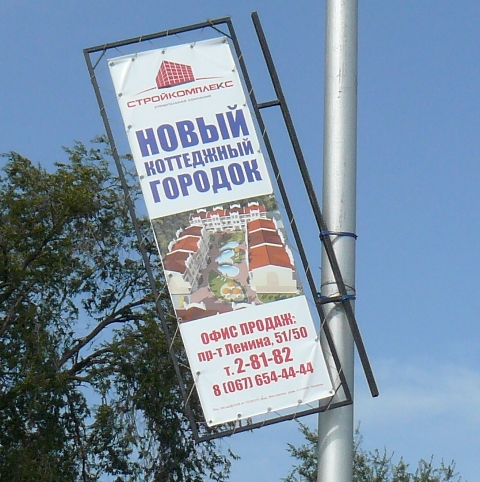 Я думаю, что «Новый коттеджный городок» достоин большего. Ну, не солидно ж, господа, вешать такую рекламу на фонарном столбе, да еще и «на честном слове».